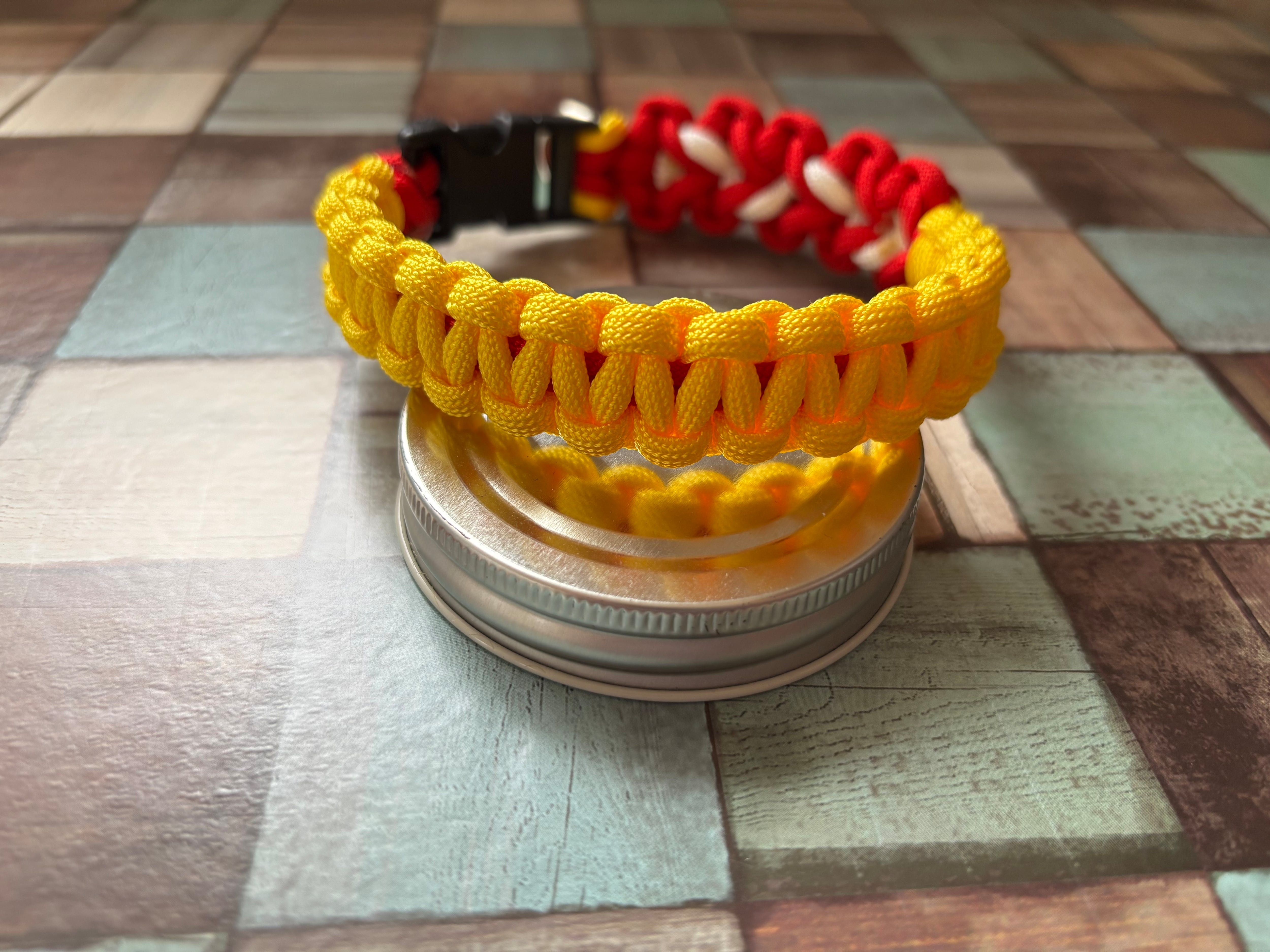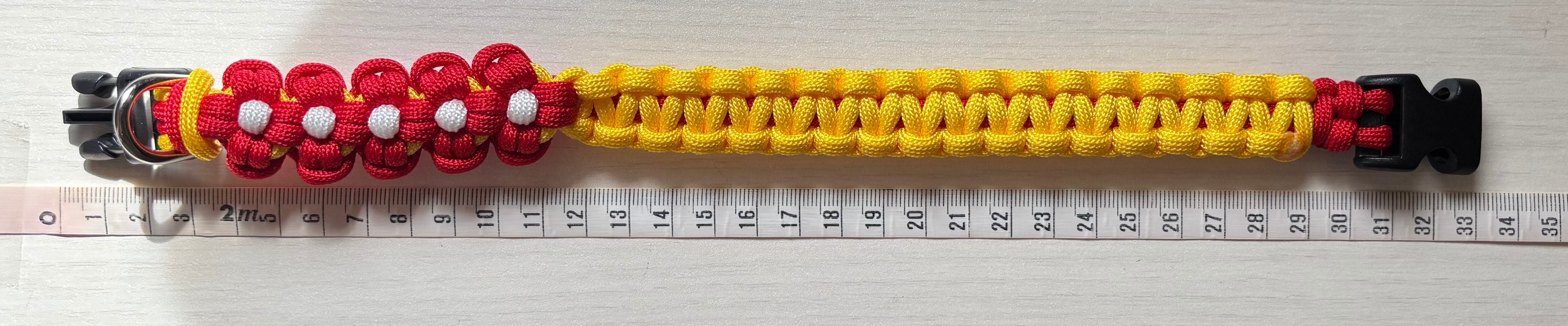 引っ張りが強い子はパラコードが伸びてサイズが変わる場合がございますのでご注意くださいませ。