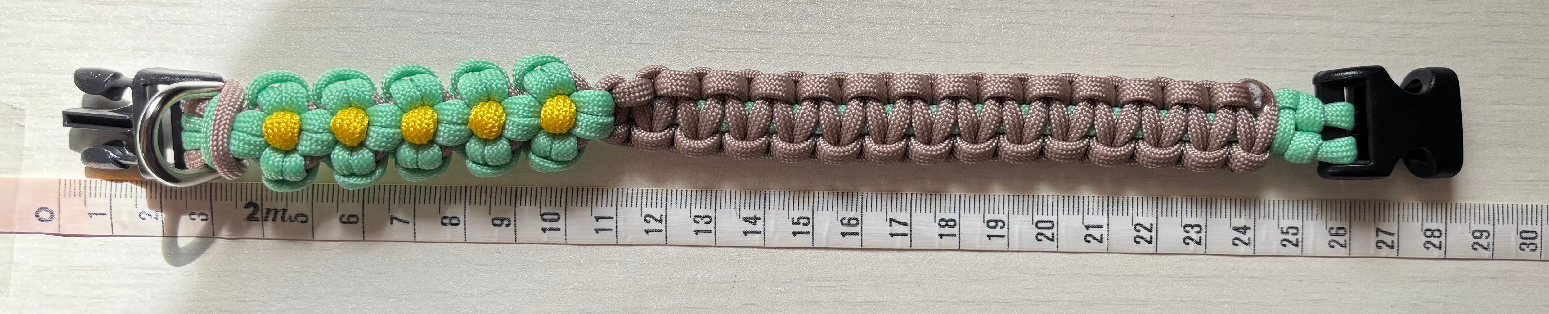 引っ張りが強い子はパラコードが伸びてサイズが変わる場合がございますのでご注意くださいませ。