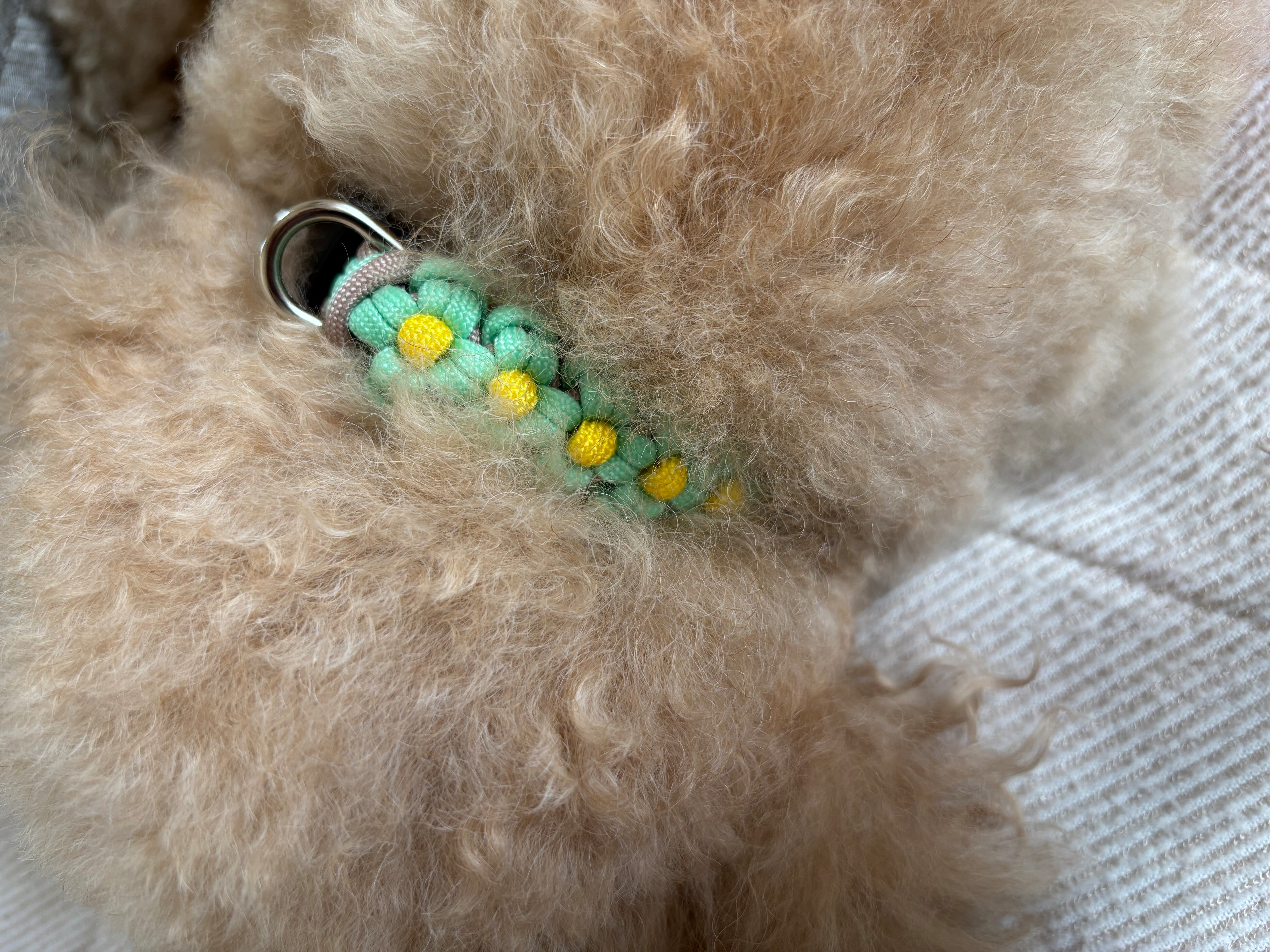 ⚠️見本で我が家のトイプードル(毛量かなり多め)の首周りのお写真も載せております。首周りヌードサイズ23センチで首輪のサイズ約29センチで指1本入るぐらいでした。