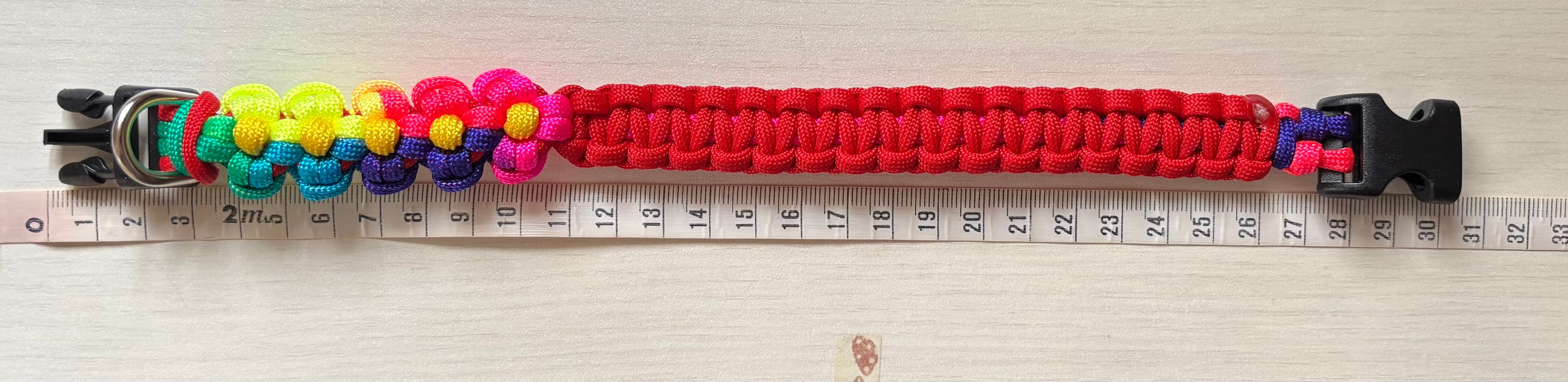 引っ張りが強い子はパラコードが伸びてサイズが変わる場合がございますのでご注意くださいませ。