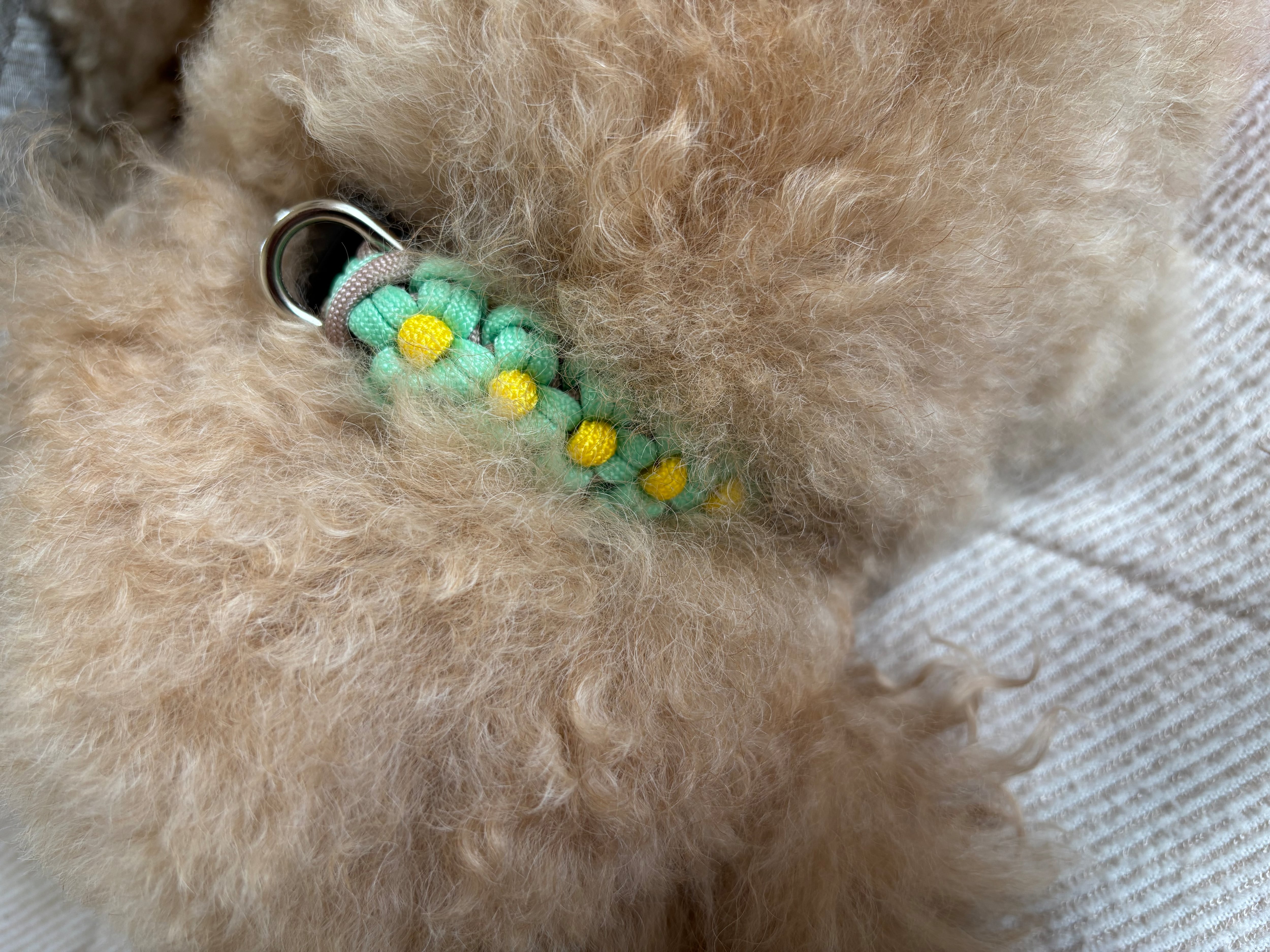 ⚠️見本で我が家のトイプードル(毛量かなり多め)の首周りのお写真も載せております。首周りヌードサイズ23センチ首輪のサイズ約28センチで指1本入るぐらいでした。