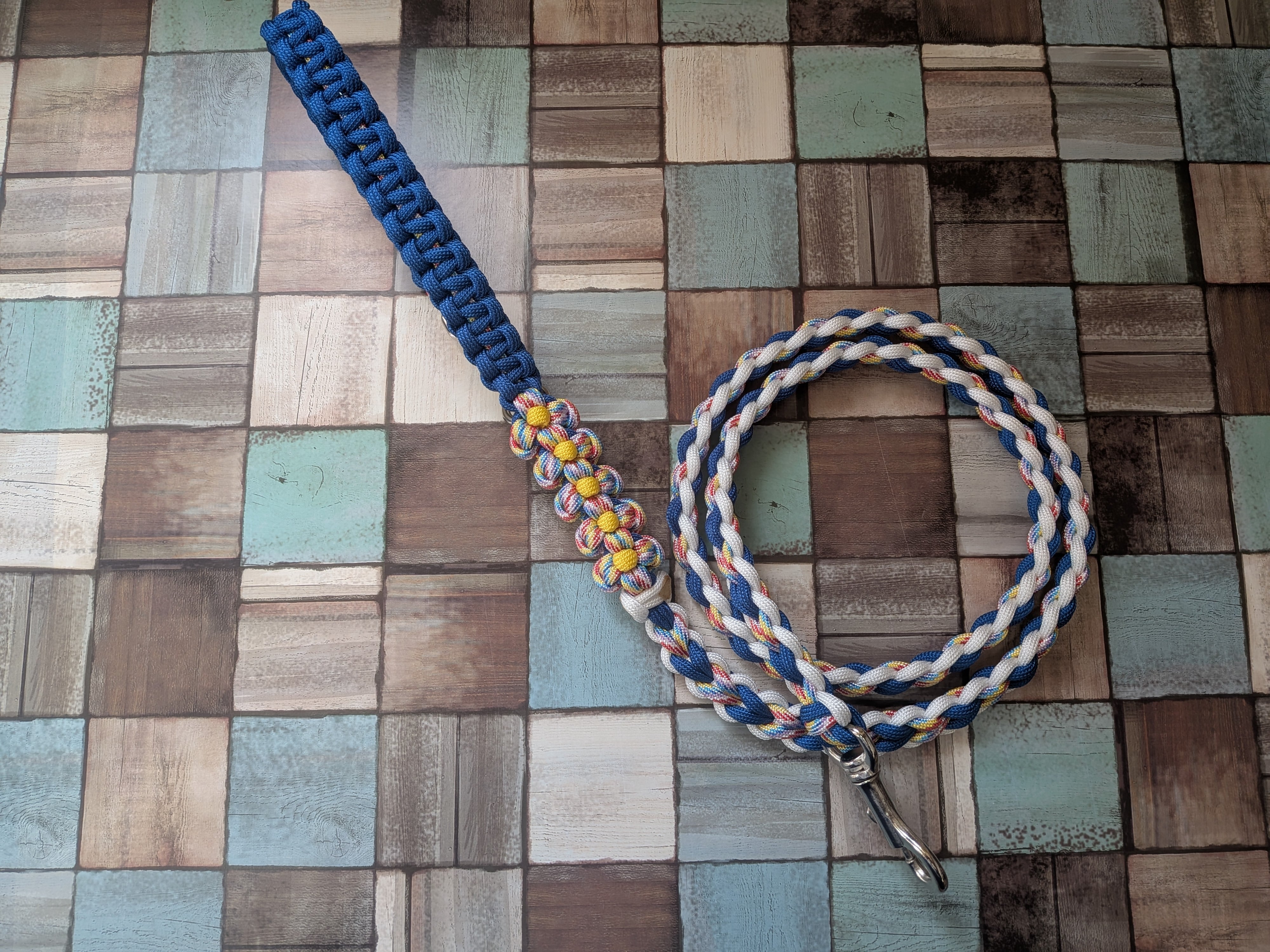 ★こちらのリードはハート編みの中型犬〜大型犬用のお花付きリードになります。全長約115センチリードとなっております。