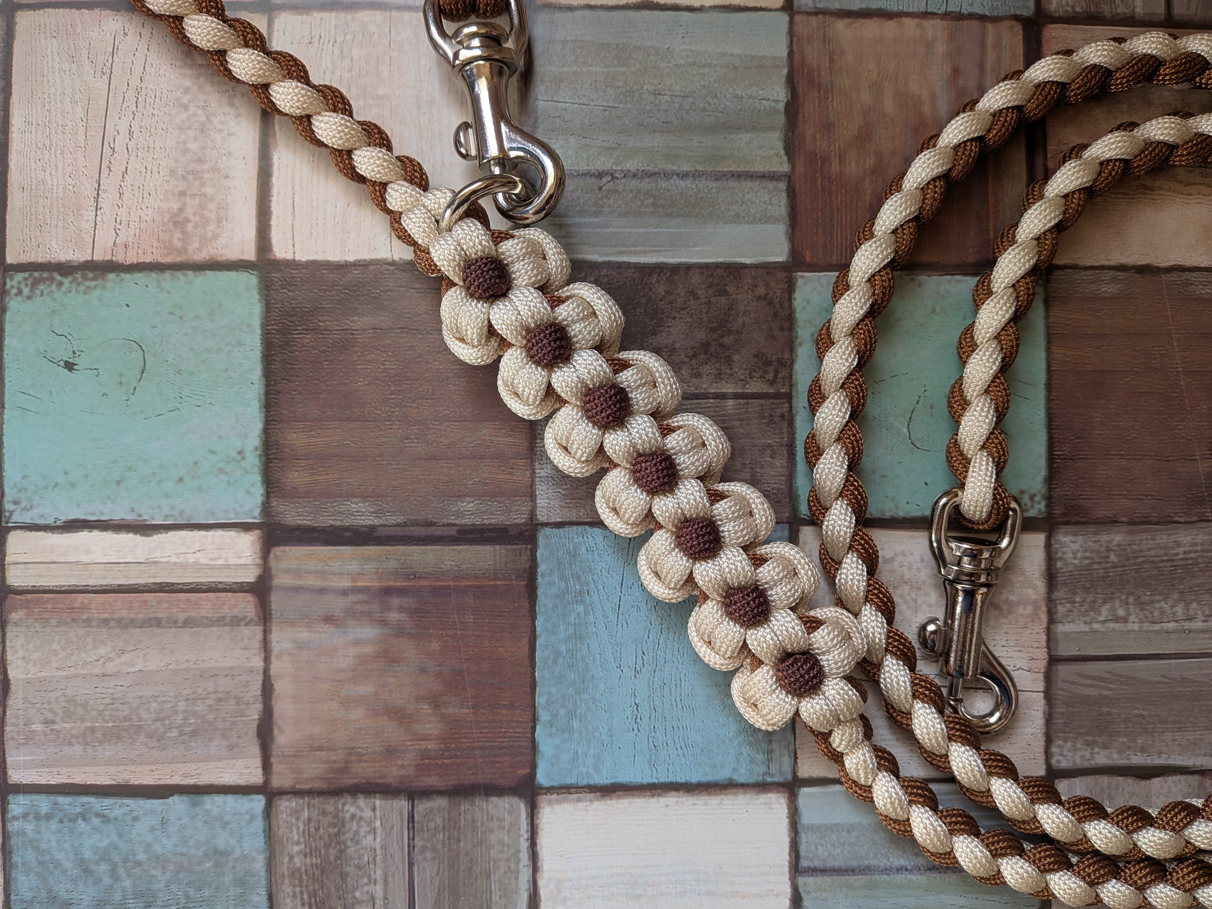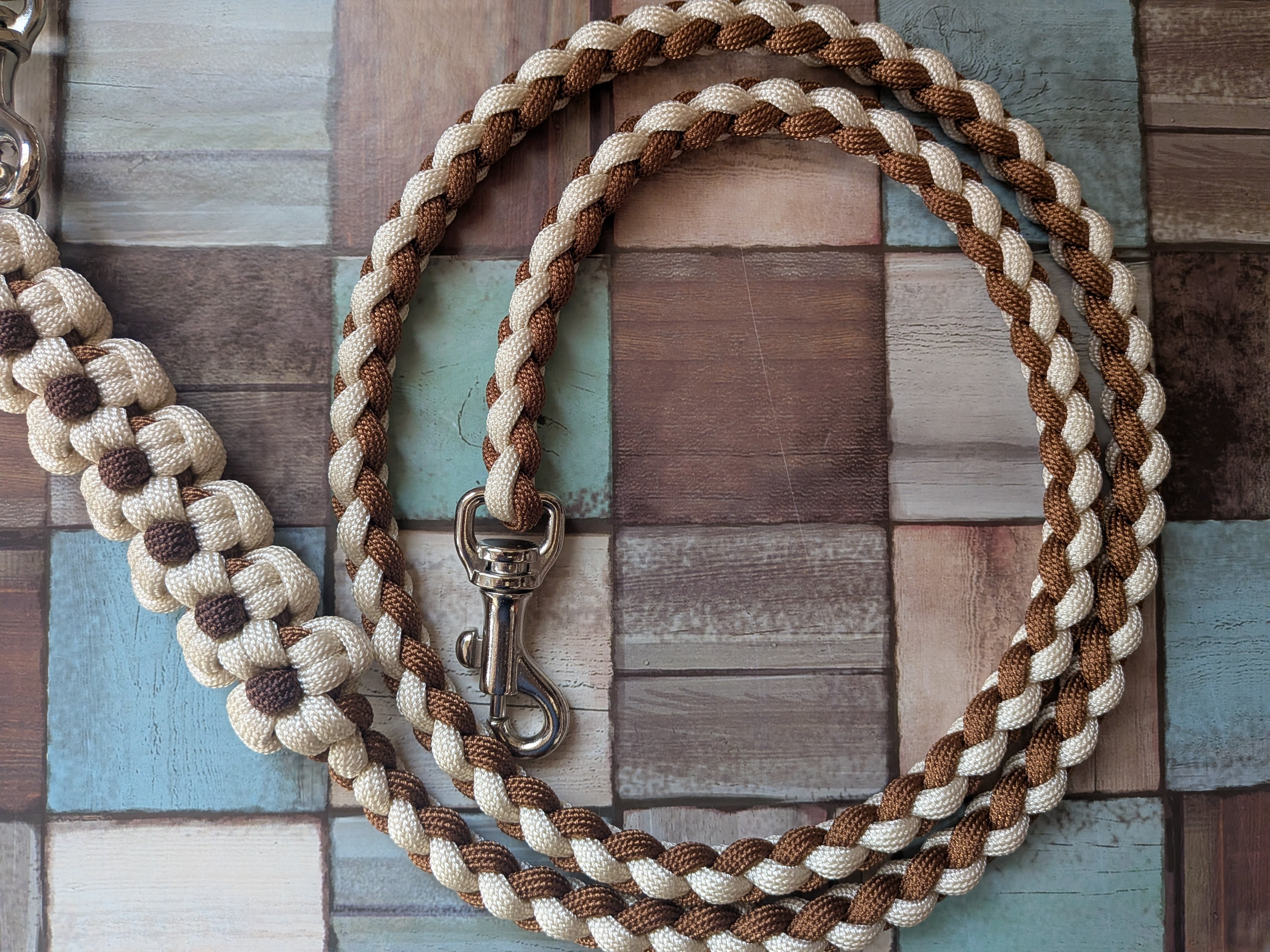 ベージュ色と茶色のパラコードで編み込んでおります。