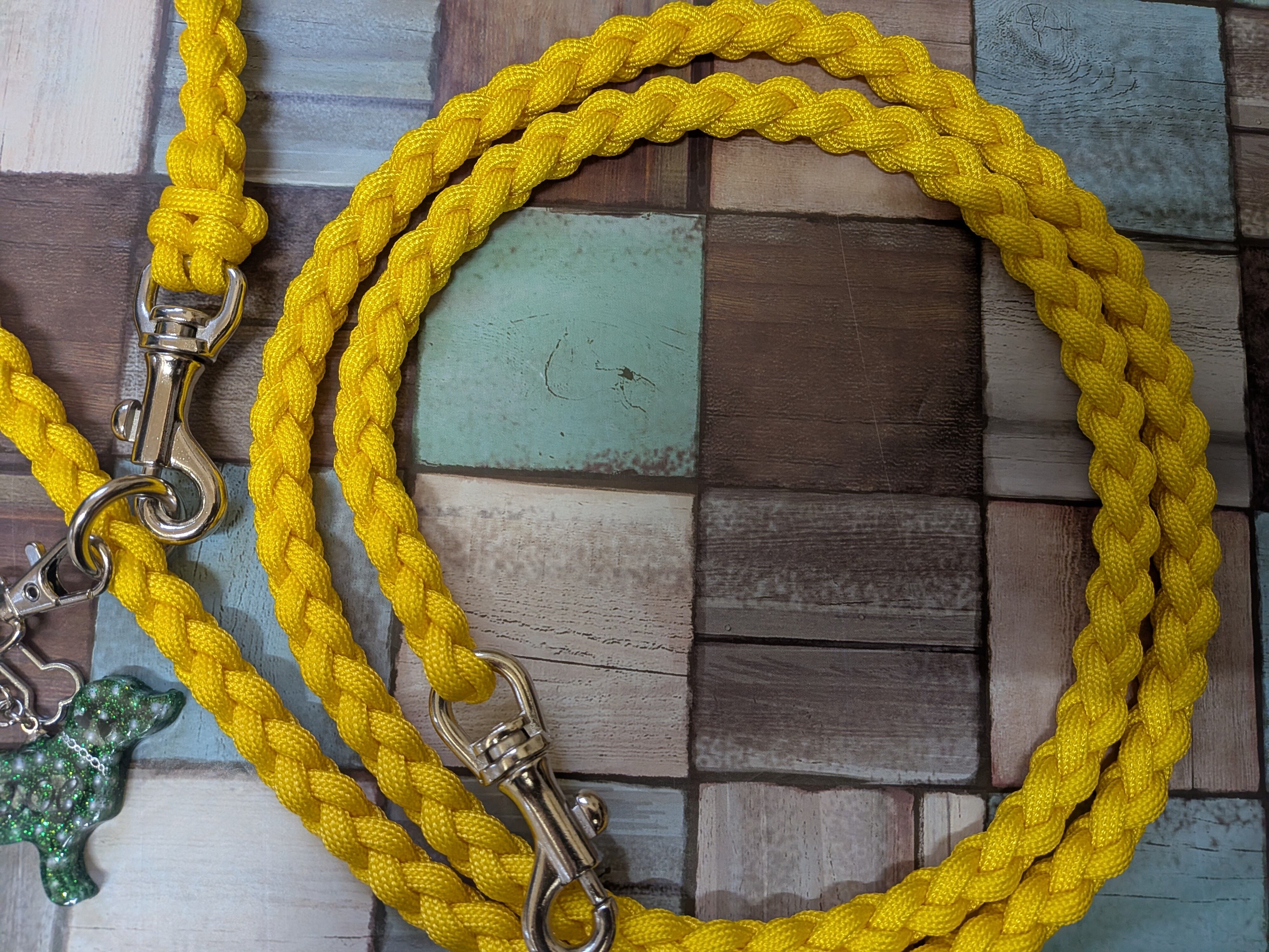 黄色と黄色のパラコードで編み込んでおります。