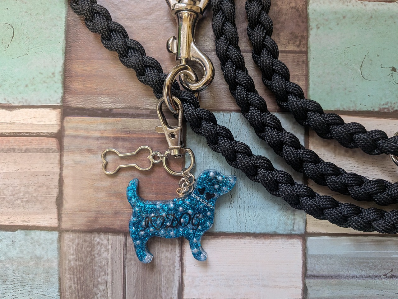 持ち手近くにILOVE DOGの文字入りチャームをつけてみました。