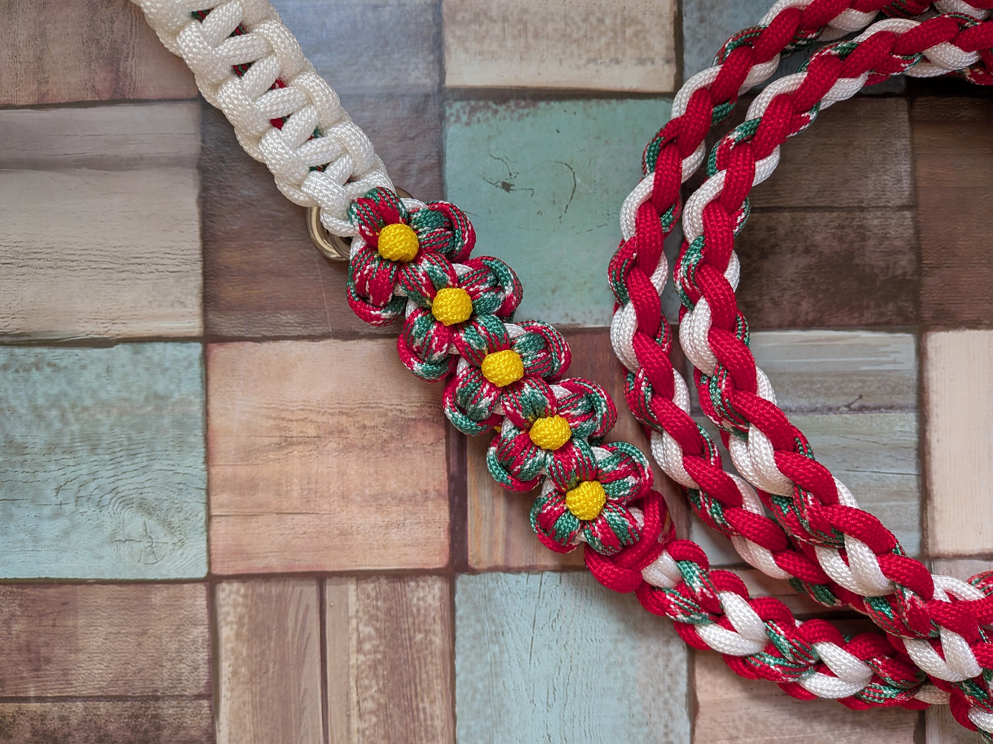 ★こちらのリードはハート編みの中型犬〜大型犬用のお花付きリードになります。全長約115センチリードとなっております。
