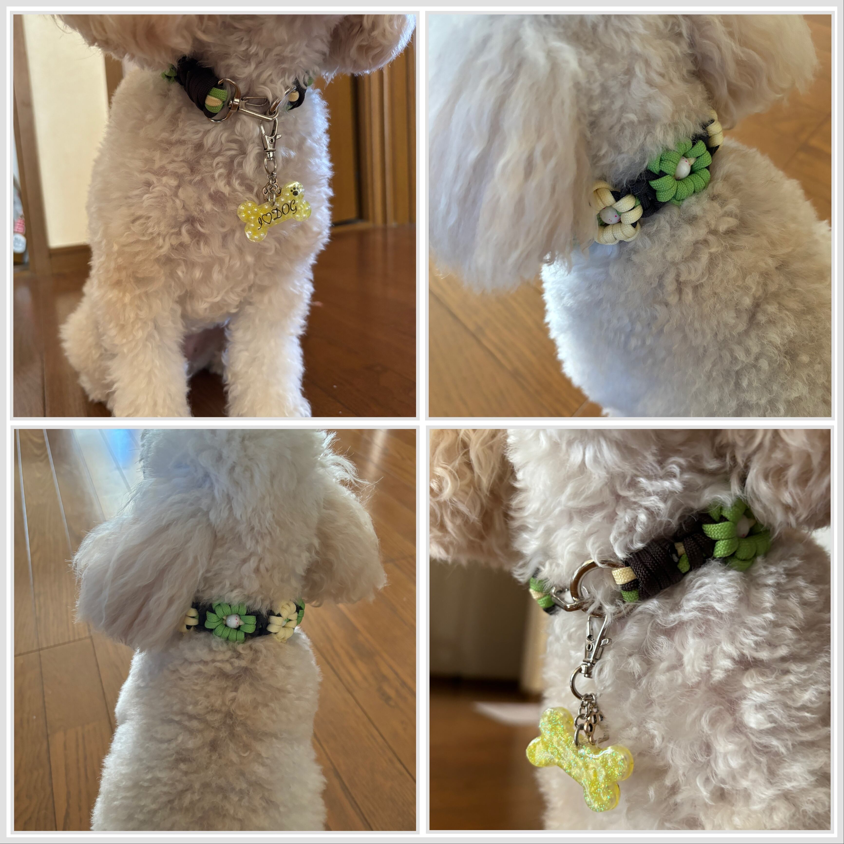 丸カン部分に迷子札やチャームをつけても可愛いです(見本のお写真ご参照ください)
